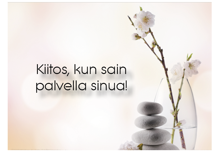 Sinua palvelee kosmetologisi: Lisäämme korttiin sinun nimesi ja puhelinnumerosi sekä laitamme mukaan pienen makean.